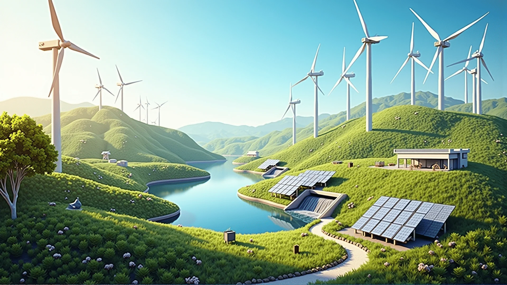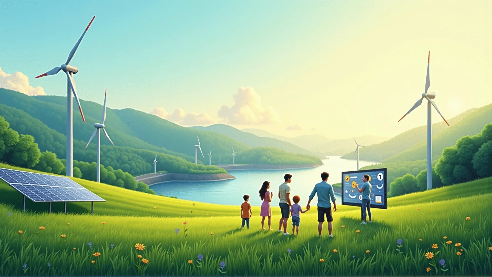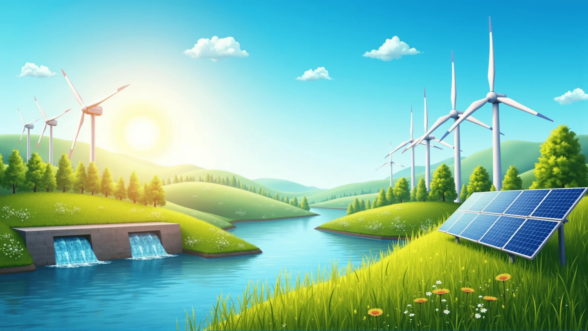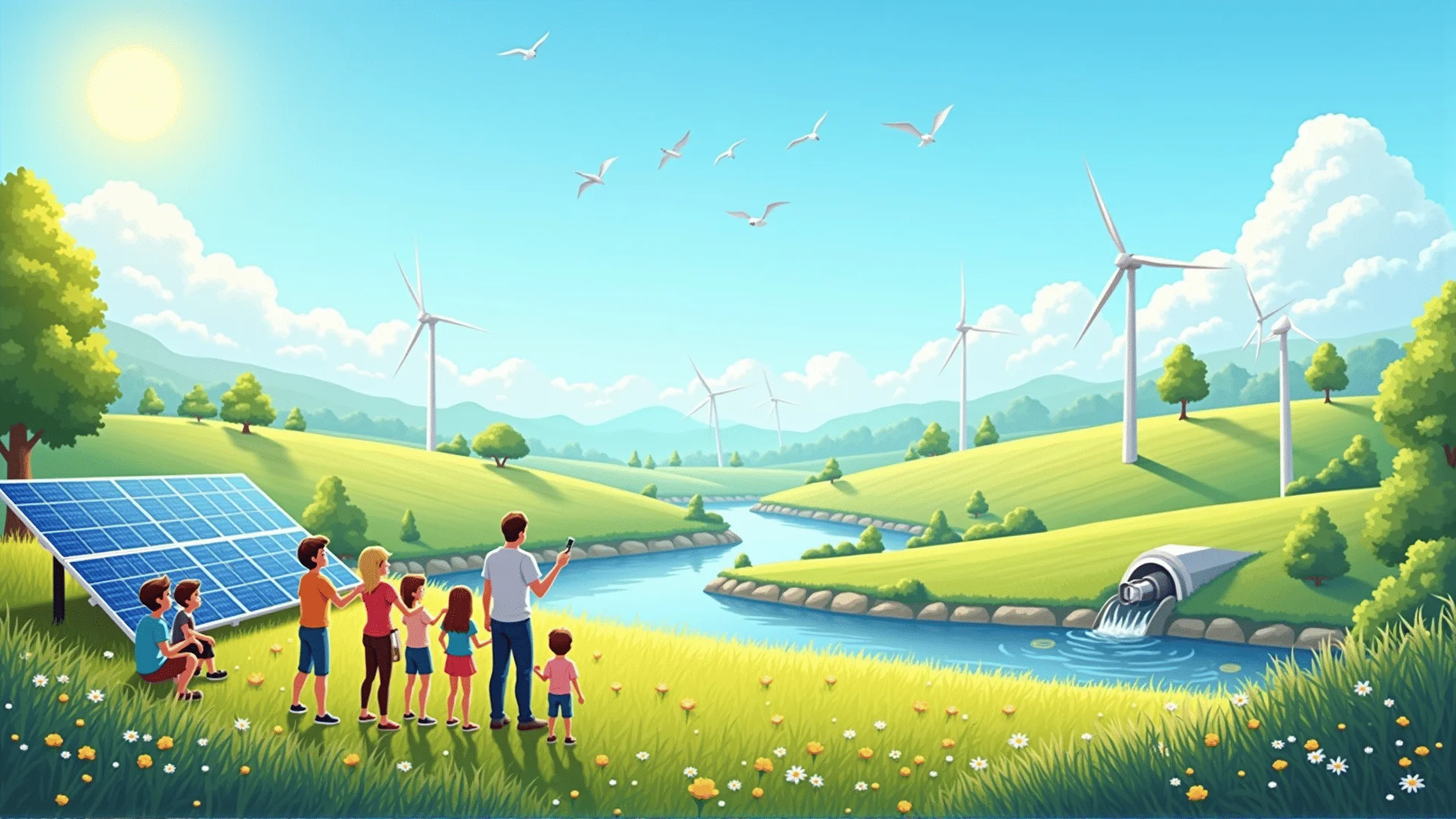 Entdecken Sie die Vielfalt der erneuerbaren Energiequellen: Sonne, Wind, Wasser und Biomasse.
